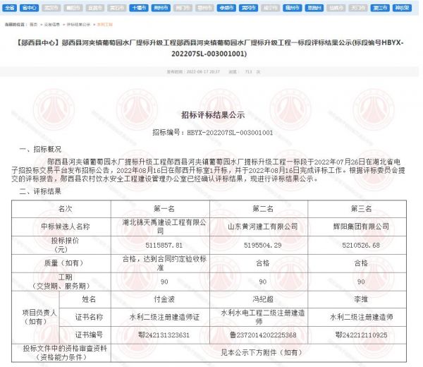 项目名称:郧西县河夹镇葡萄园水厂提标升级工程一标段招标编码:HBYX-202207SL-003001001招标人:郧西县农村饮水安全工程建设管理办公室相关网络截图:相关网络截图:郧西县河夹镇葡萄园水厂提标升级工程一标段