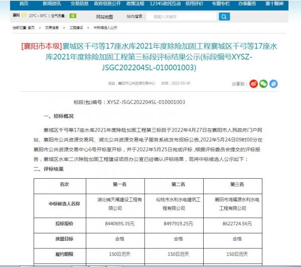 项目名称:襄城区千弓等17座水库2021年度除险加固工程第三标段招标编码:XYSZ-JSGC202204SL-010001003招标人:襄城区水库二次除险加固工程建设项目办公室相关网络截图:相关网络链接:襄城区千弓等17座水库2021年度除