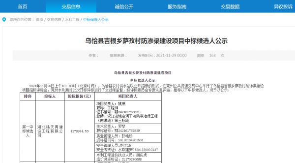 项目名称:乌恰县吉根乡萨孜村防渗渠建设项目招标编码:KZSLZB-20210053招标人:乌恰县农村供水站相关网络截图:相关网络链接:乌恰县吉根乡萨孜村防渗渠建设项目中标候选人公示