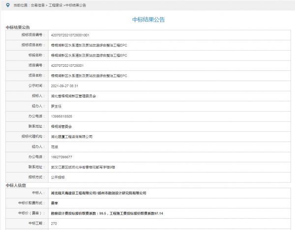 项目名称:梧桐湖新区水系清淤及泵站改造综合整治工程EPC招标编码:42070720210728001001招标人:湖北省梧桐湖新区管理委员会相关网络截图:相关网络链接:梧桐湖新区水系清淤及泵站改造综合整治工程EPC中标结果公示