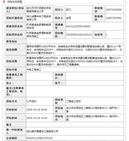 项目名称:机场高速金银潭新能源停车场项目编号:201909021041202121招标人:武汉天河机场路投资发展有限责任公司相关网络截图:相关网络连接:https://www.whzbtb.com/V2PRTS/WinningPublici