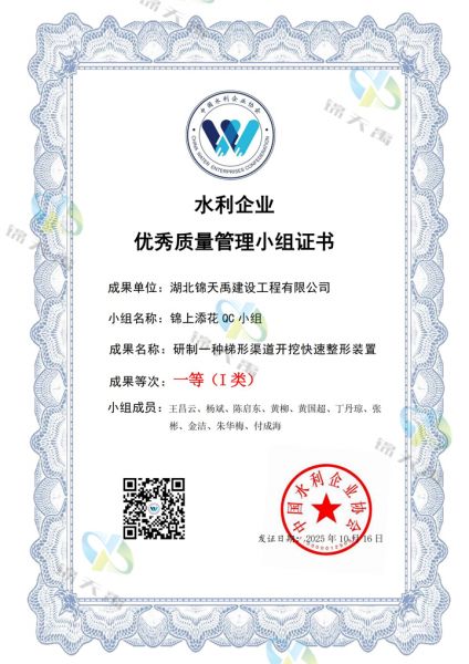 公司拥有水利二级、市政一级、地灾甲级、环保一级等16项资质。连续多年获得全国优秀水利企业、水利工程施工AAA级信用企业、市政工程施工AAA级信用企业、湖北省纳税信用A级企业、湖北省守合同重信用企业、湖北省高新技术企业、湖北省创新型中小企业、湖北省建筑业重点培育企业、水利安全生产标准化一级单位、湖北省水利水电工程优质奖(江汉杯)、湖北省水利工程建设文明工地等诸多荣誉称号,同时拥有包括质量信得过班组一等奖、国家发明专利与实用新型专利、国家级建设工法、国家级市政及水利工程优秀质量管理小组Ⅰ类成果奖在内的多项成果。