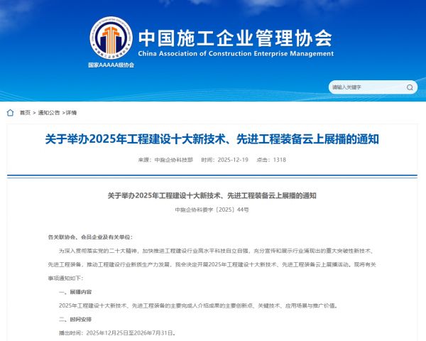 相关链接:关于举办2025年工程建设十大新技术、先进工程装备云上展播的通知
