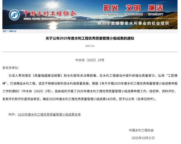相关链接:关于公布2025年度水利工程优秀质量管理小组成果的通知