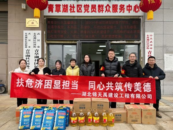春意渐近,情暖寒冬。2月11日清晨,锦天禹党支部代表一行带着大米、食用油等节日慰问品,前往武汉市东西湖区径河街道青草湖社区稻香苑小区,开展新春走访慰问活动,为困难群众送去党组织和企业的关怀与温暖。在社区工作人员的引导下,慰问组一行带着物资与